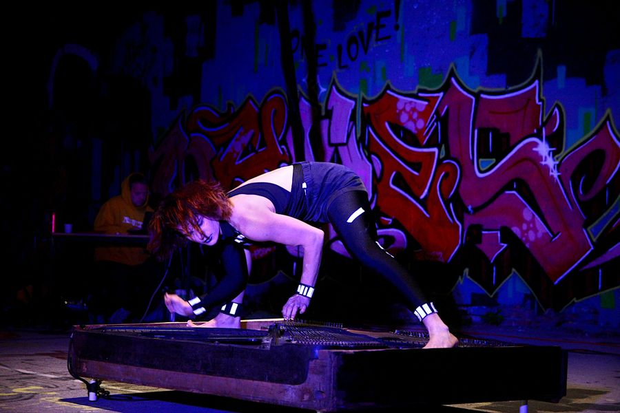 Avtorica v sodobni cirkuški predstavi raziskuje interakcijo prepariranega pianina s klasičnimi akrobacijami na zračni vrvi. Gib se bo pretvoril v valovanje vrvi, to pa bo prešlo v zvočno valovanje najrazličnejših frekvenc in amplitude, kar deluje kot medsebojna interakcija, odprta za nepredvidljive situacije. Kako se naše telo in čustva odzivajo na okolico in družbeno realnost? V kakšni meri jo lahko poustvarjamo ali spreminjamo? Ali smo v nenehnem iskanju ravnovesja? Danijela Zajc: »Vse na tem svetu je povezano, medsebojno so-vpliva in so-obstaja. Ideja za delo je nastala skozi delovanje v Cirkusarni Naokrog v porušeni Avtonomni tovarni Rog, kjer sem našla in preparirala zapuščen pianino. Delo posvečam Avtonomni tovarni Rog.«